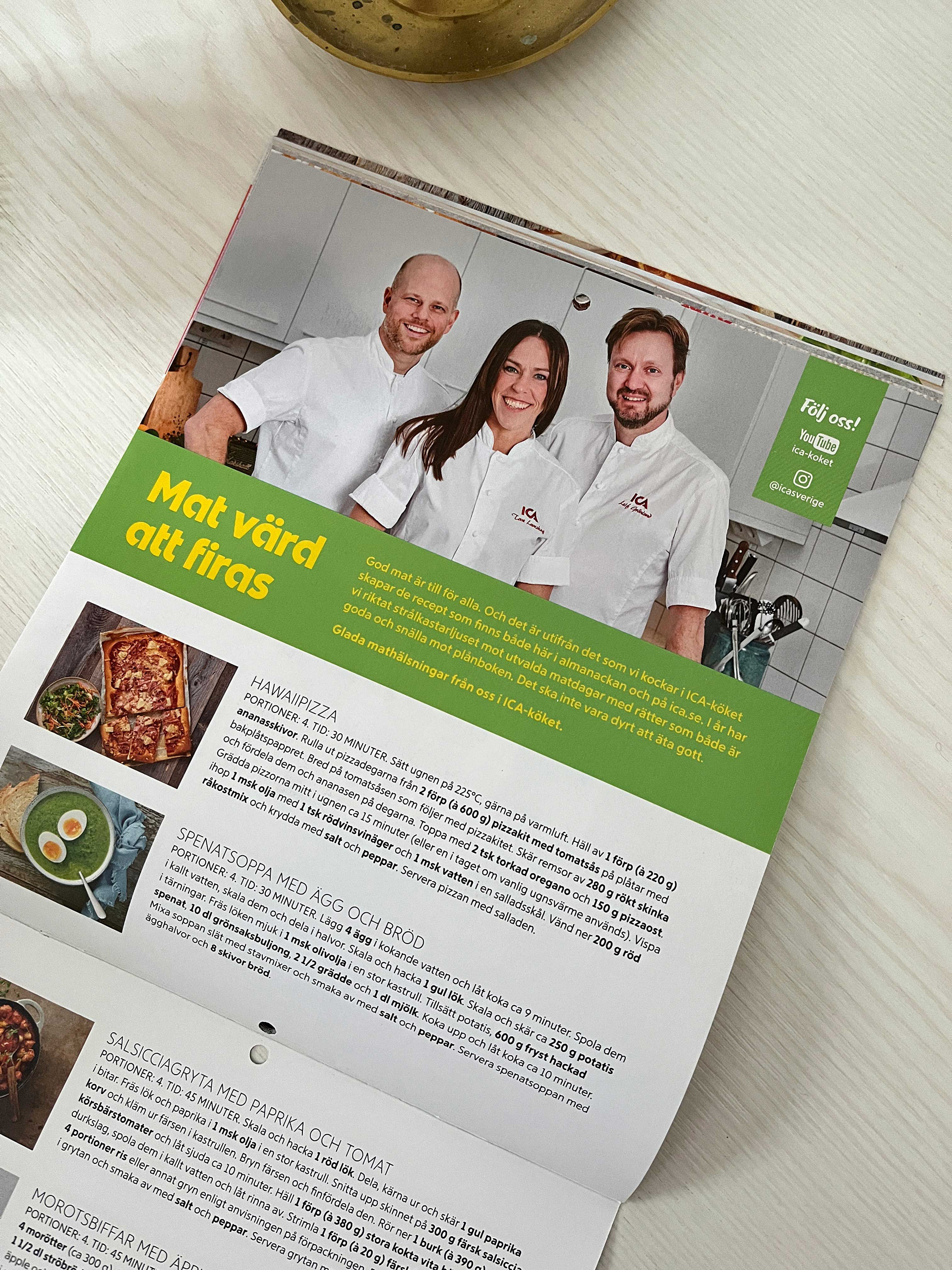 Grafisk formgivning av cateringmeny för ICA Kvantum Södermalm.