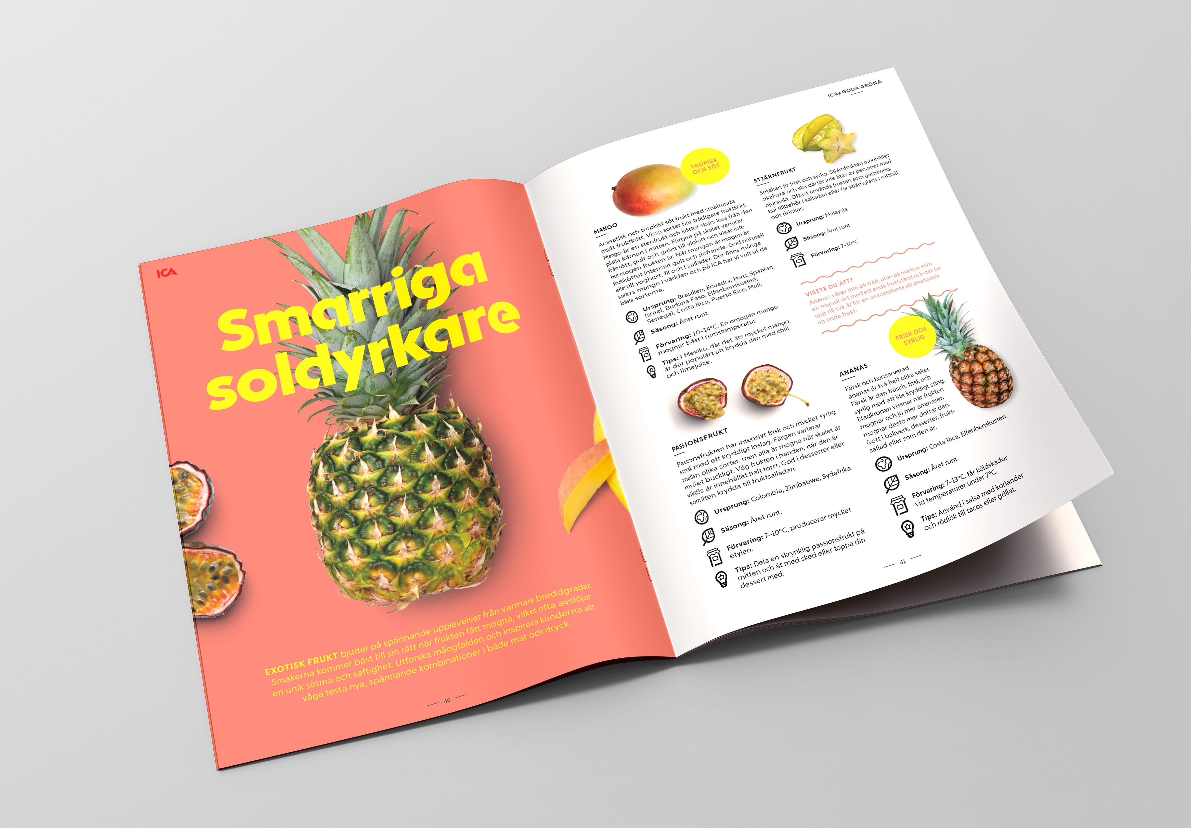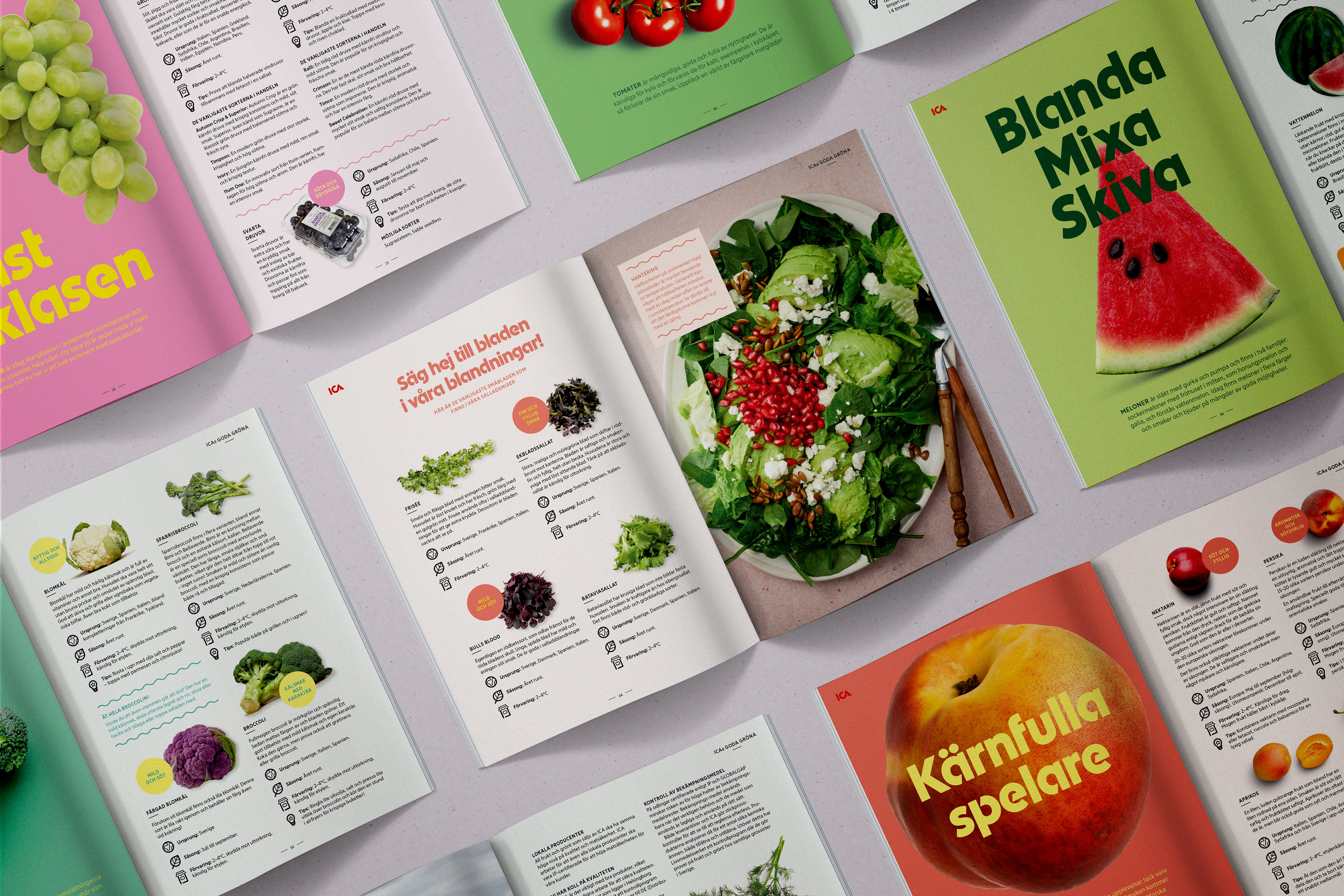 Uppdraget innefattade att uppdatera ICAs gamla katalog för Frukt & Grönt till ett mer inspirerande och informativt material för butikspersonal. En önskan var att materialet skulle utgå från ICAs nya Frukt & Grönt-koncept ”Nyfiken Grön” som används på skyltar i butik, men skulle alltså nu även fungera i form av en katalog på ca 150 sidor.