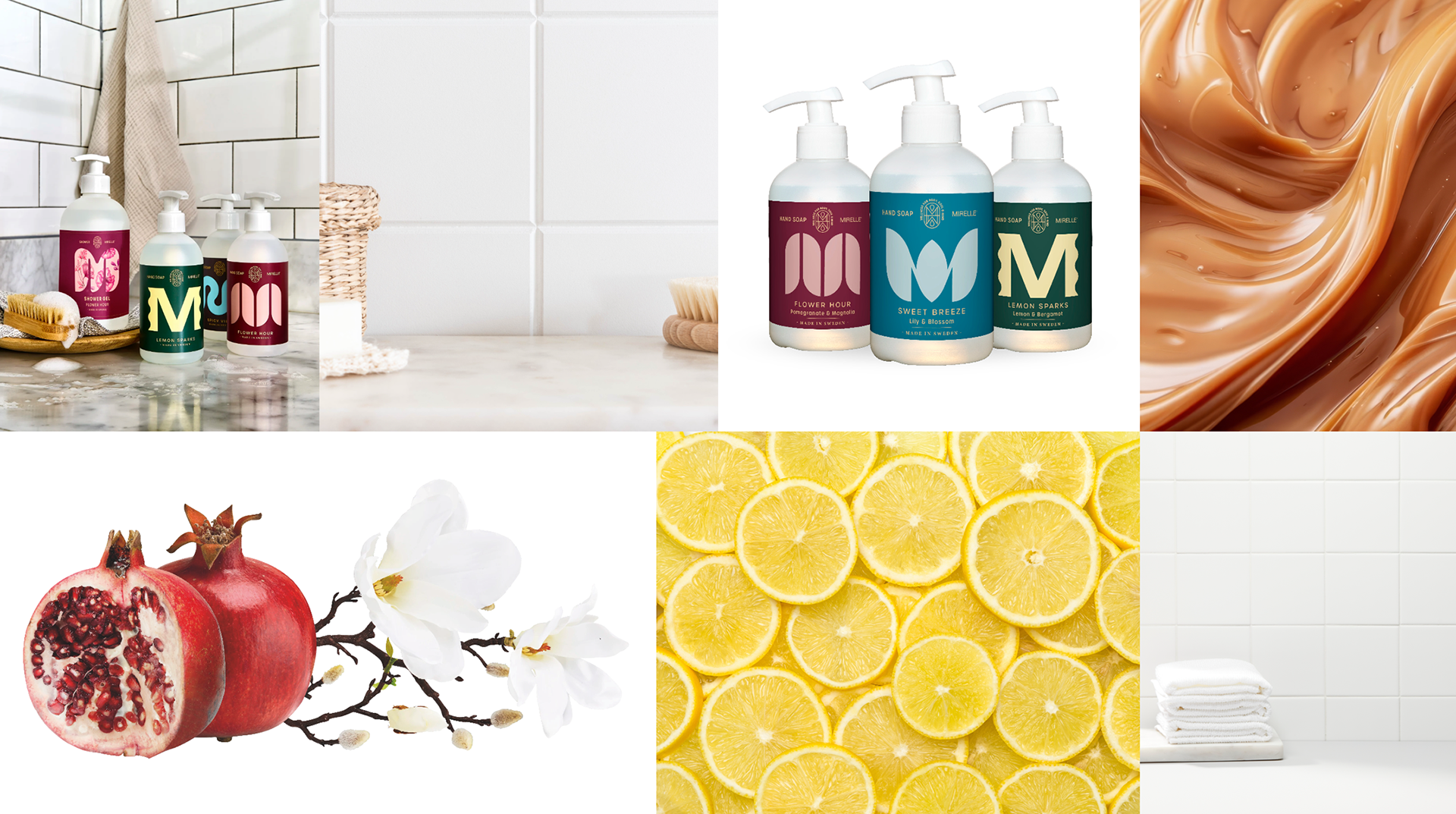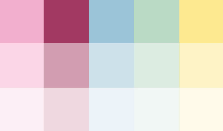 Klara färger som utgår från produktdesignen. De tar för sig och kan kopplas ihop med olika dofter och känslor: blomster, citron, en mild sommarbris…Poppiga men ger ändå ett mjukt intryck. Färgerna kan användas med olika procent för enkel användning och att kunna jobba ton i ton.