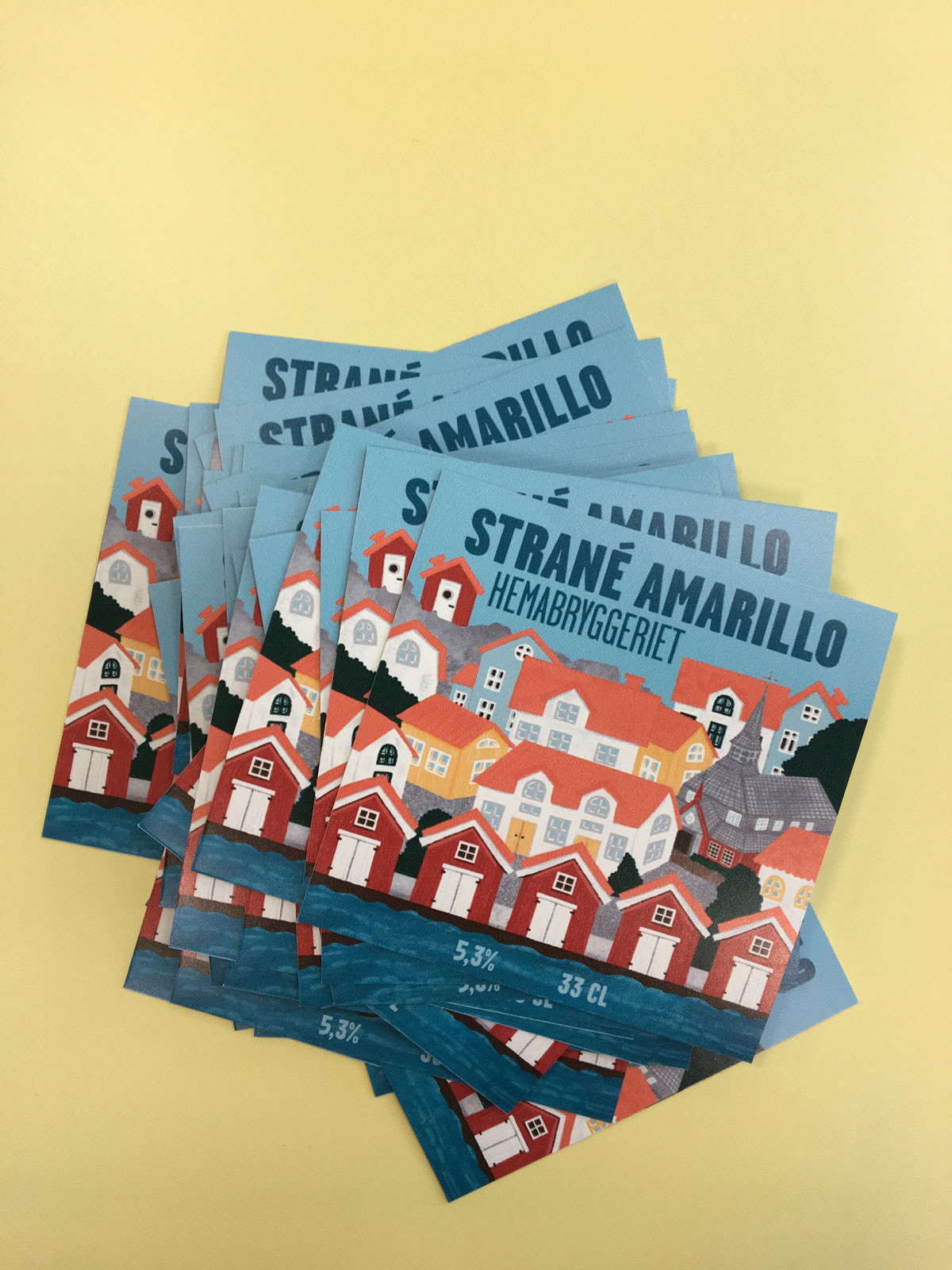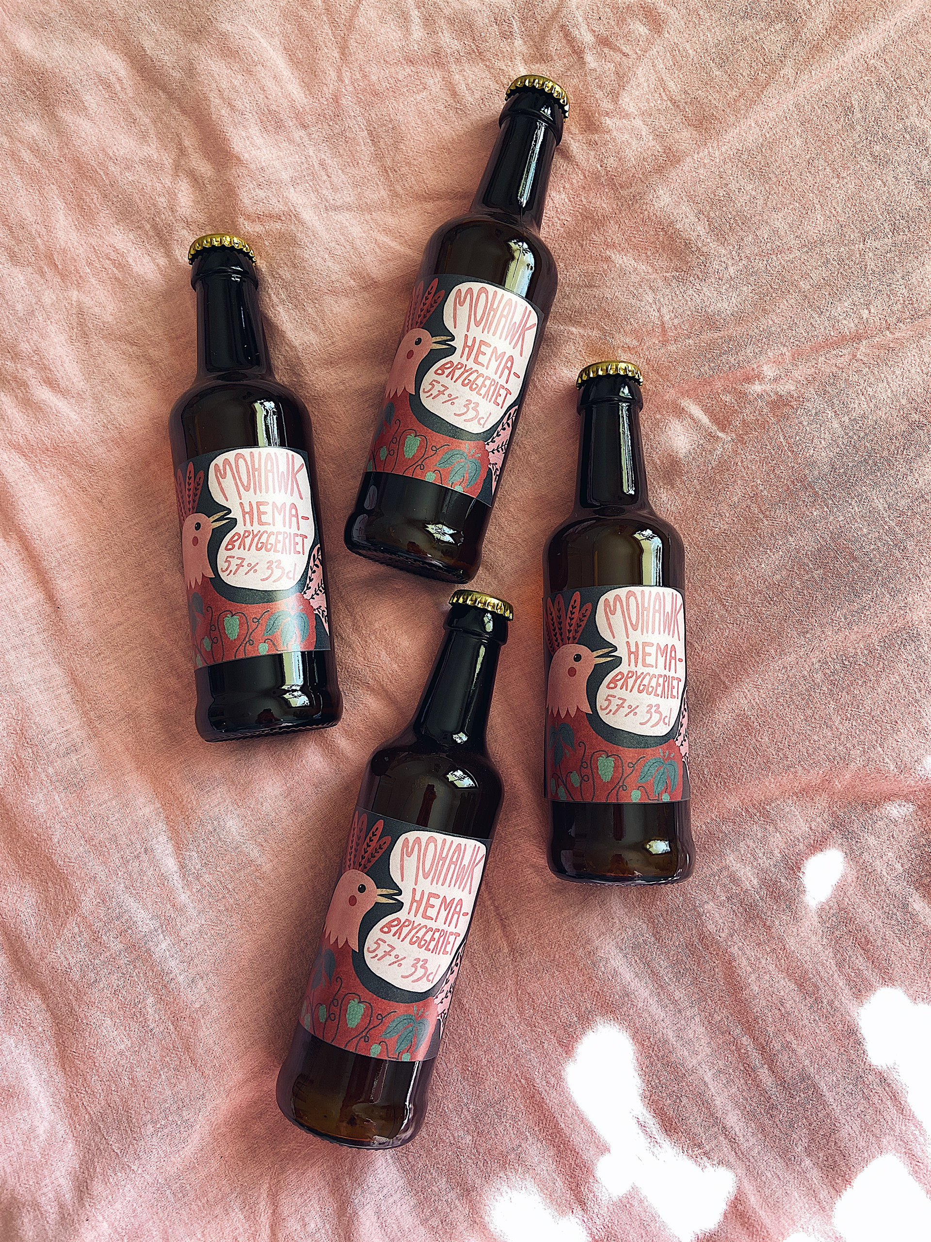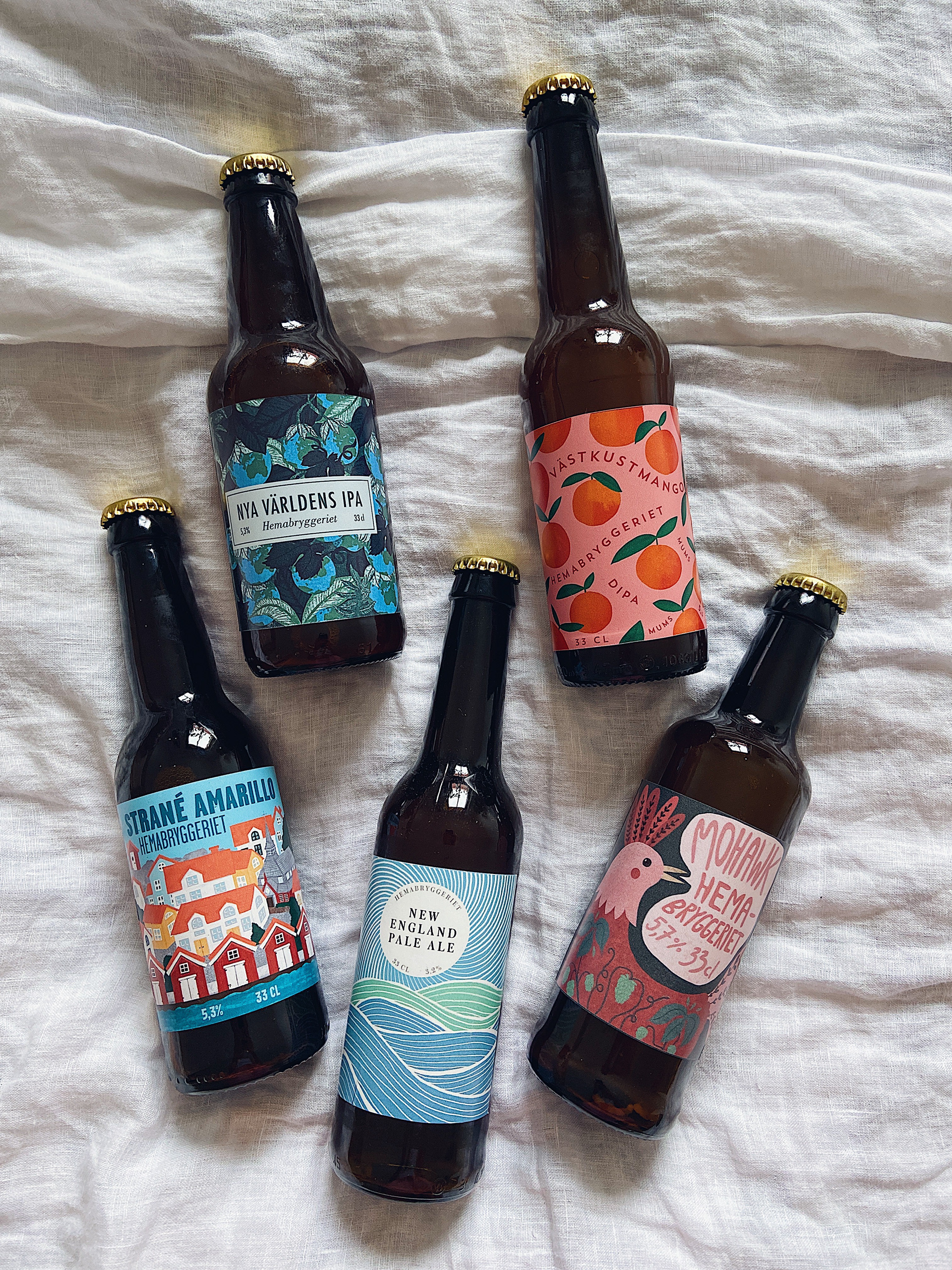 Öletiketter till ett hemmabryggeri.